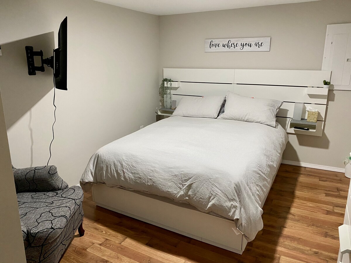 We have a stylish & spacious one bedroom ground level apartment suitable for up to 2 people. Centrally located near DownTown (light sleepers beware), just blocks away from main street, banks, harbour front, cinema, retail, restaurants and coffee shops. One block away from the LOTW Brewing Company, the Post Office and No Frills. ** 3rd party booking is subject to cancellation and requires prior approval **