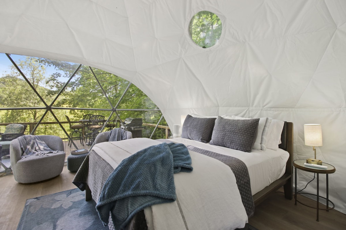 Escapada en una casa domo junto al arroyo cerca de Boone | Cama king