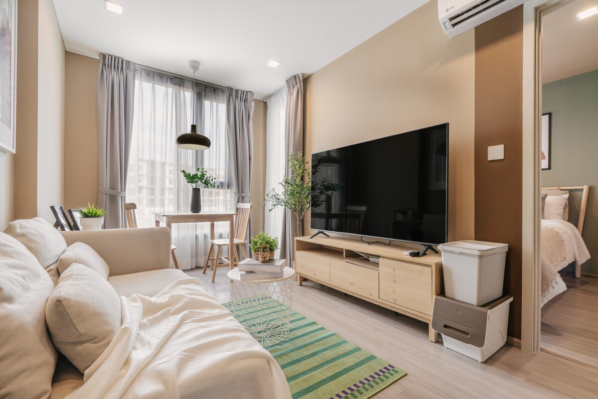 Nuestra «Nice-studio Room @ Sansiri Dcondo Mine» es un alojamiento privado (no compartido), cómodo y seguro. Ideal para parejas, viajeros de negocios y familias (con hijos). La habitación está bien amueblada con muebles de madera de teca. El apartamento está bien diseñado, con una hermosa piscina, piscina para niños y gimnasio, en una ubicación estupenda para viajar por Phuket. Te damos la bienvenida para que seas nuestro huésped y recibas servicios PROFESIONALES, fiables y amables. * DESCUENTO para nuevos registros airbnb.com/c/lupthawita
