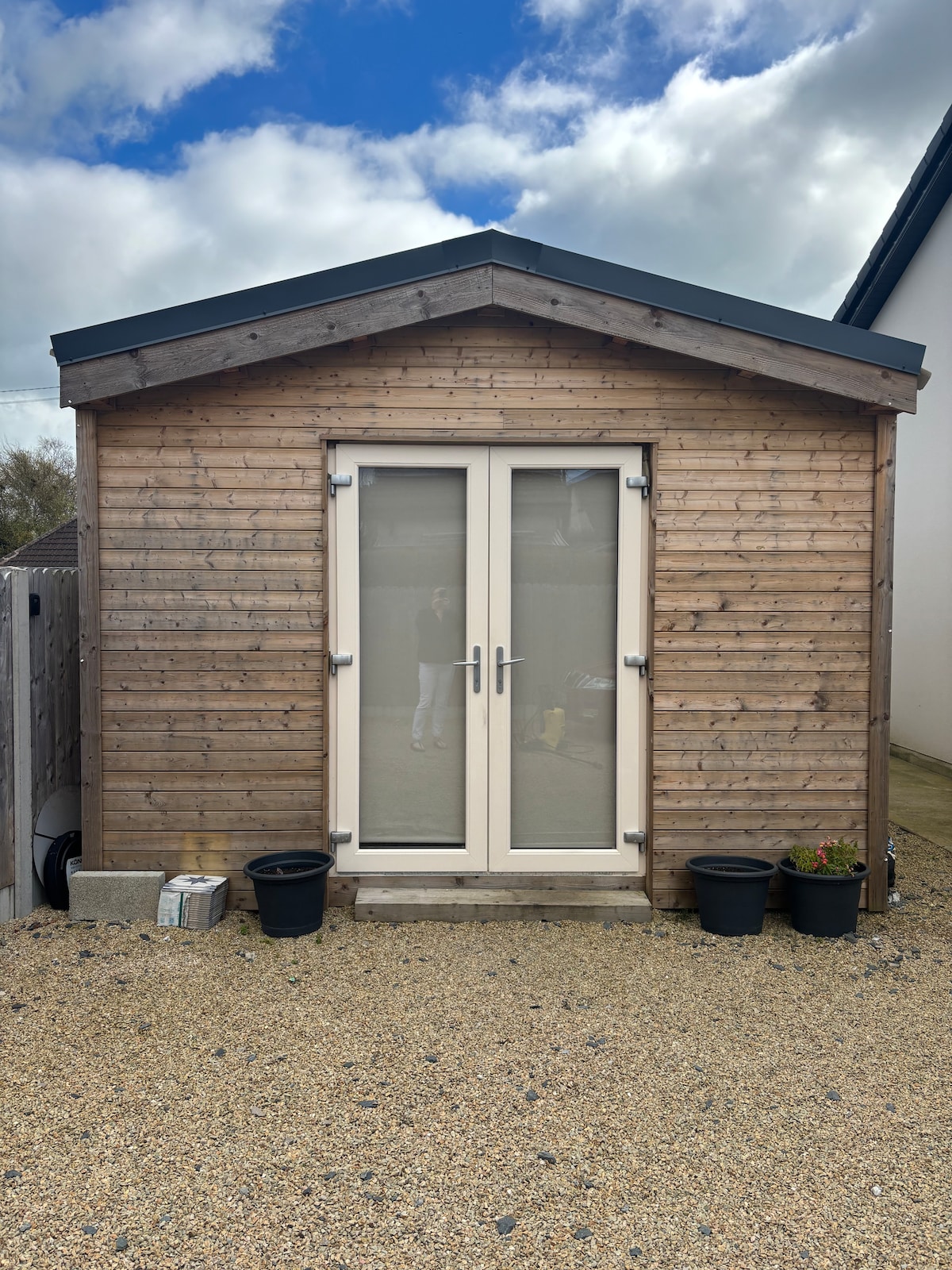 Cabaña de madera de estudio de nueva construcción situada en el centro, a solo 10 minutos a pie de la calle principal de Greystones, la estación de DART y la zona del puerto deportivo/puerto. Nuestra cabaña tiene una cama nueva y cómoda de 5 pies con base de listones de madera, baño con ducha eléctrica y TV de pantalla plana grande. Ubicada en nuestro espacio de jardín trasero en un barrio residencial tranquilo. La cabaña tiene una entrada que utiliza un pasaje lateral. Hay 3 escalones hasta la cabaña, ya que esto no sería adecuado para visitantes con problemas de movilidad.