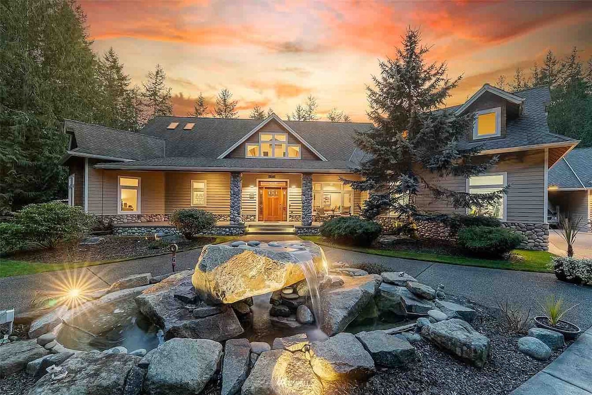 Descubre un impresionante refugio boscoso de 6 acres con 4 amplios dormitorios, 2 acogedoras salas de estar y 3,5 lujosos baños. Junto a un lanzamiento público de kayak/barco, disfruta de la pesca, el senderismo y los senderos para bicicletas en medio de parques nacionales y estatales. Relájate en el jacuzzi, reúnete alrededor de la hoguera, saborea delicias culinarias en la plancha Blackstone o en la gran cocina de chefs y disfruta de servicios recreativos como canchas de pickleball, voleibol y baloncesto. ¡Tu escapada al bosque te espera!