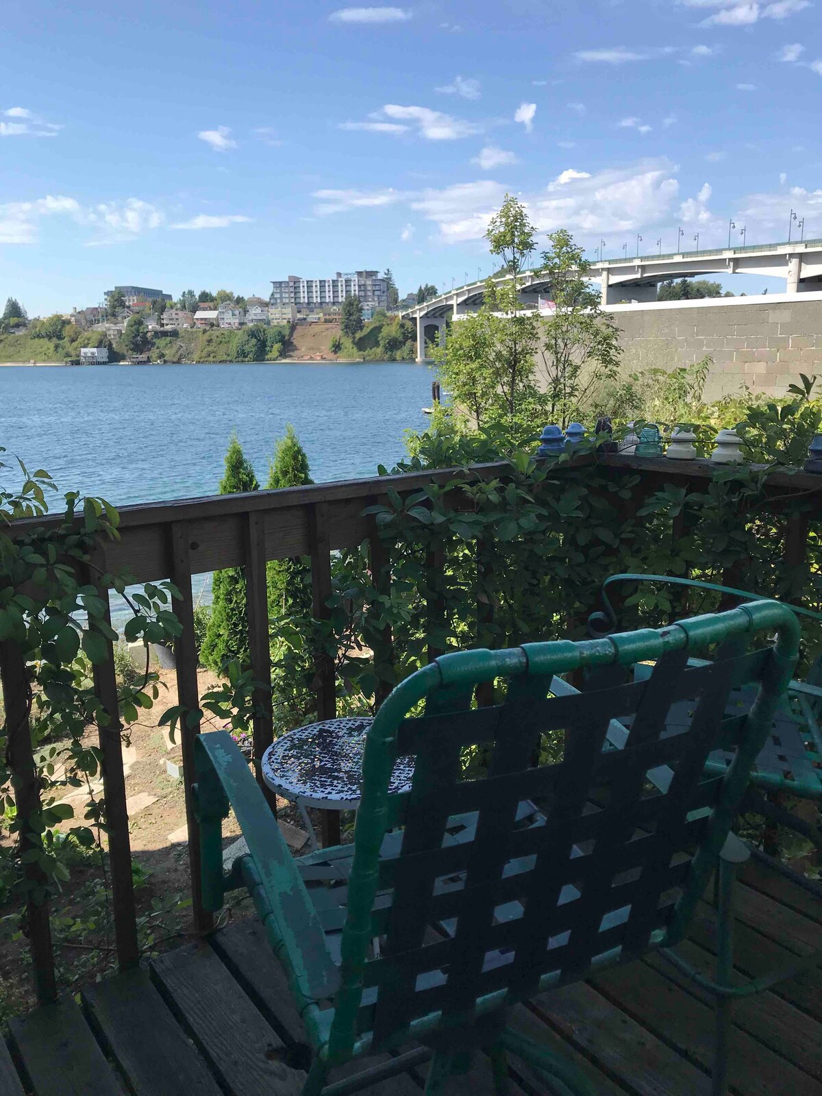 Estudio frente al mar en playa privada con entrada independiente de la casa principal. Nada sofisticado, ofrecemos alojamiento para no fumadores, sin mascotas, cómodo para uno o dos adultos. Cama tamaño queen, cocina totalmente equipada, ducha recién renovada. Pequeña terraza privada con vistas al agua y al puente Manette. Excelente ubicación, a 1 milla del ferry de Seattle, astillero naval, a poca distancia a pie de restaurantes, panadería y spa. Descuento semanal y mensual disponible. Damos la bienvenida a los huéspedes que respeten/siguen las normas de la casa.