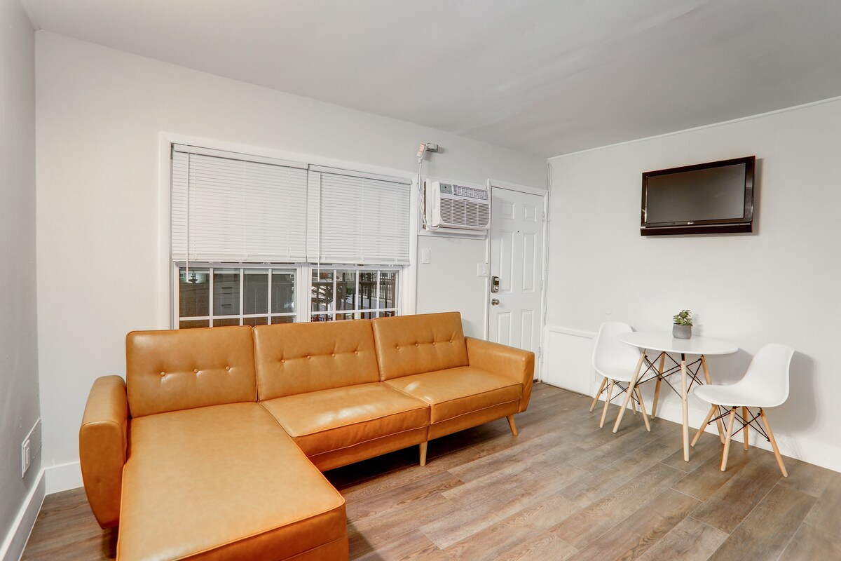 ¡GRAN REAPERTURA CON NUEVAS RENOVACIONES ESTE FIN DE SEMANA DEL DÍA DE LOS CAÍDOS! Inspirando todo lo relacionado con el descanso y la relajación, Brooklyn Beach Club es el mejor destino de vacaciones diseñado para alojar a huéspedes de todas las edades. Sé de los primeros en experimentar la transformación total de un motel que antes no encajaba en un relajante refugio a pocos minutos de la playa. Con una renovación completa tanto por dentro como por fuera, disfruta de un poco de R&R en una habitación totalmente renovada con un plano de planta similar al de un apartamento tipo estudio que a un espacio hotelero tradicional. Las representaciones incluidas muestran nuestro nuevo y elegante aspecto, que se estrenará a tiempo para el fin de semana del Día de los Caídos de 2022. Cada una de nuestras 14 suites de estilo de mediados de siglo está diseñada estratégicamente para maximizar el espacio sin sacrificar el estilo. Completa con una pequeña cocina que cuenta con una nevera de tamaño completo, fogones, microondas y cafetera Keurig, junto con utensilios de cocina y vajilla, hacen que viajar sea muy fácil con todas las comodidades del hogar incluidas. Un juego de cocina proporciona asientos adicionales o espacio para comer perfecto para organizar una comida casera preparada en tu cocina privada. Un cómodo sofá cama seccional permite dormir o relajarse en él. Desempaca tus maletas en una espaciosa cómoda o un gran armario para que tu estancia sea tan sencilla como soleada. Un juego de sábanas suaves y una acogedora colcha en una cama tamaño queen, además de una litera completa, permiten un lugar cómodo para recostar la cabeza cuando termine el día. En el exterior, opta por descansar lujosamente alrededor de la piscina o toma el sol en nuestra terraza del segundo piso. Las tumbonas brillantes y ligeras, las sillas laterales y los cómodos sofás ofrecen opciones óptimas para sentarse en las áreas de la piscina y el patio. Las mesas de picnic en la parte trasera son el lugar perfecto para almorzar después de un largo día bajo el sol. El aparcamiento en el lugar permite un fácil acceso a tu vehículo para cargar y descargar. Nuestro ambiente familiar, divertido y animado fomenta un destino de vacaciones apto para todos. Situado en el corazón de Wildwood, a pocas manzanas de la playa y del paseo marítimo, sumérgete en la acción de la isla con algunos de los bares y restaurantes más populares a la vuelta de la esquina. Disfruta de un desayuno o brunch refrescante en Marvis Diner o satisface tu gusto por lo dulce en Duffer's Restaurant y Old Fashion Ice Cream. La cena y las bebidas están a solo unos pasos en los principales locales, como Dogtooth Bar and Grill, MudHen Brewing Company y Poppi's Pizza, por nombrar algunos. Visita el famoso letrero de Wildwood ubicado a una manzana en el paseo marítimo y hazte una foto familiar que evoque recuerdos de unas vacaciones que no olvidarás pronto. Estamos deseando que vengas. Síguenos en Instagram @brooklynbeachclub_wildwood NORMAS DE LA CASA Y EXTRAS: Prohibido el consumo de alcohol a menores de edad. Prohibido fumar. Se pueden aplicar gastos de limpieza adicionales. No hagas ruido después de las 23:00 h (nada de música alta ni ruidos). Por favor, lava los platos después de usarlos. ***Si bien se proporciona ropa de cama para tu comodidad y conveniencia, no se proporcionan toallas. Asegúrate de traer las tuyas.***
