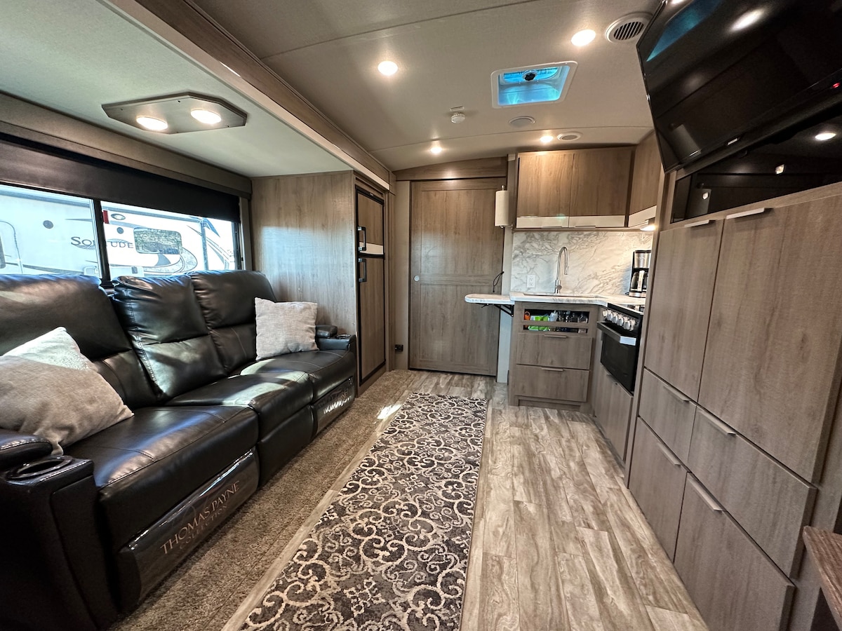 Acogedor glamping en su máxima expresión. Esta casa rodante tiene todas las comodidades de casa, como aire acondicionado, un sofá reclinable, así como características divertidas como una plancha Blackstone al aire libre y asientos al aire libre. Perfecto para familias o parejas, el dormitorio principal tiene una cama residencial tamaño queen con una puerta de privacidad, así como una cama doble para niños o huéspedes. ¡La experiencia de hospedarse en una autocaravana es una excelente manera de crear recuerdos sin sacrificar la comodidad de tu hogar! Prepararé la casa rodante para ti y la tendré lista.