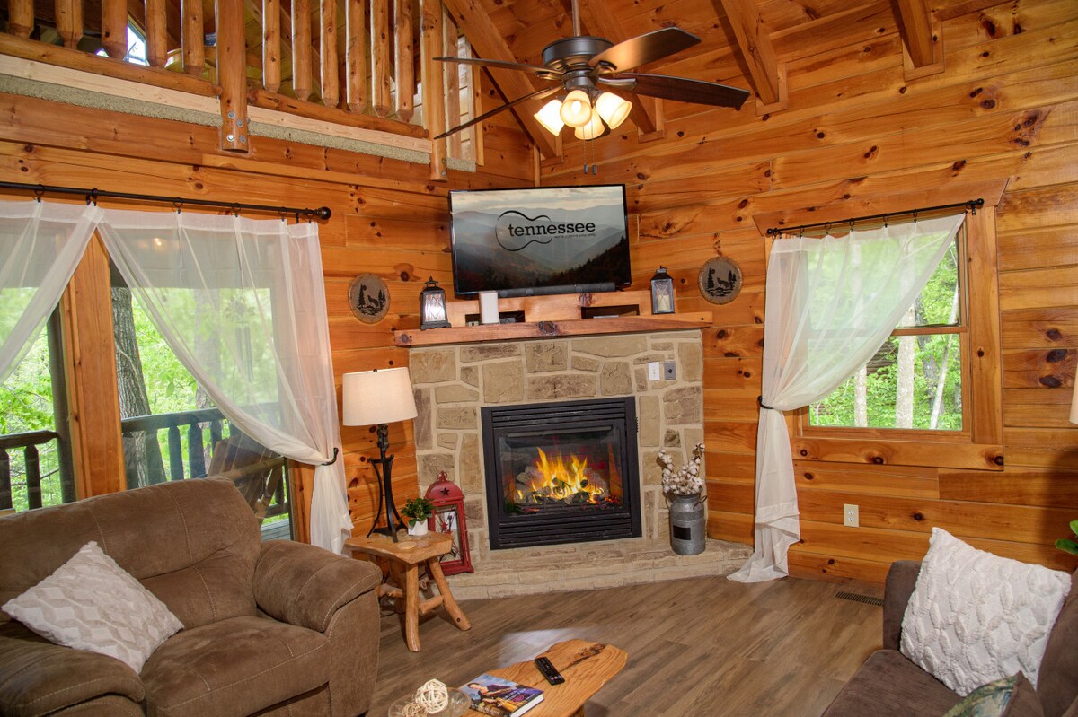 Escápate al Nido Nocturnal, una joya 💎 escondida en medio de la belleza de la naturaleza🍃. ¡Esta acogedora cabaña ofrece una escapada idílica para los pájaros amorosos que celebran los hitos o simplemente por diversión🥰! Crea tu propio paraíso de lujo🍹🏝️ en casa con un teatro personal, un espacioso patio al aire libre con chimenea, jacuzzi y barbacoa. 📍A 17 minutos de Pigeon Forge 📍A 25 minutos de Gatlinburg A 📍57 minutos de Knoxville ✈️ 📍A 18 minutos de Dollywood. 🎢 📍24 minutos al Parque Nacional 🌲 📍A 30 minutos de la montaña de esquí Ober. 🏂⛷️