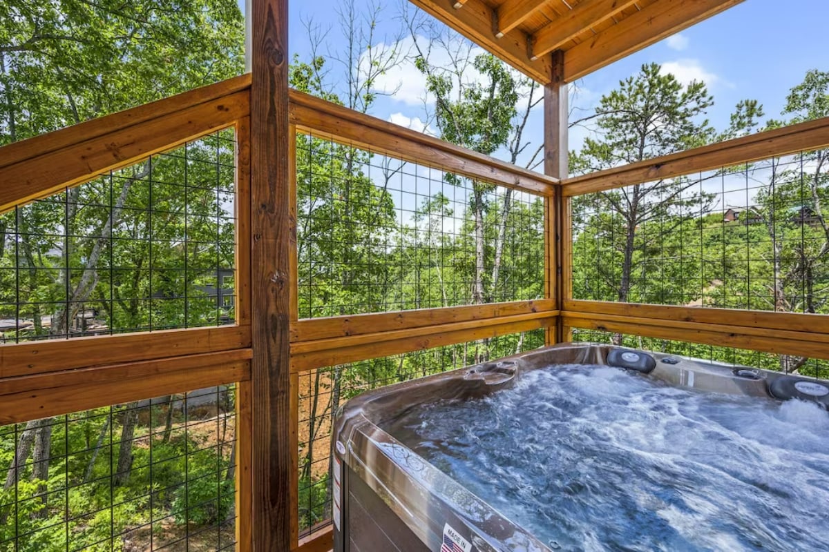 🎅¡Decorada para Navidad! 📍 A 15 minutos de Dollywood 🌄 Impresionantes vistas a la montaña Bañera de hidromasaje🔥 privada + fogata a gas 🛏️ Duerme cómodamente: 2 dormitorios King con sábanas de lujo Juegos de🎯 mesa y tejo 🚂 Escucha el nostálgico silbido del tren de Dollywood desde la cubierta Televisores 📺 4K Ultra HD en todas partes Cocina 🍽️ completa + comedor para 6 Wifi 💻 rápido + escritorio Aparcamiento 🚗 gratuito + entrada sin llave