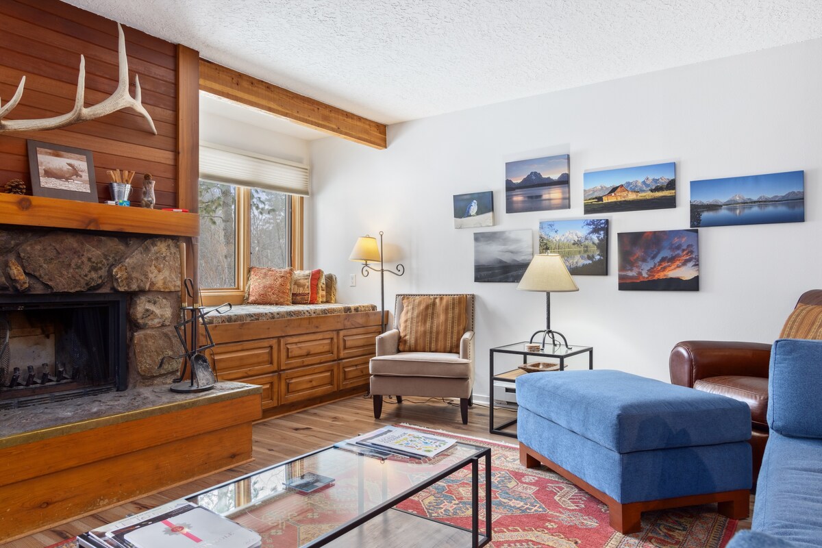 Hermoso apartamento en el barrio de Aspens que ofrece excelentes vistas a las montañas Teton. Disfruta de las vistas de la parte superior del tranvía en la montaña Rendezvous desde la comodidad de tu sala de estar mientras te mantienes caliente frente a una chimenea de leña recientemente remodelada. Una vez que estés listo para salir, estarás a menos de 5 millas de Teton Village y a 8 millas de la ciudad de Jackson.