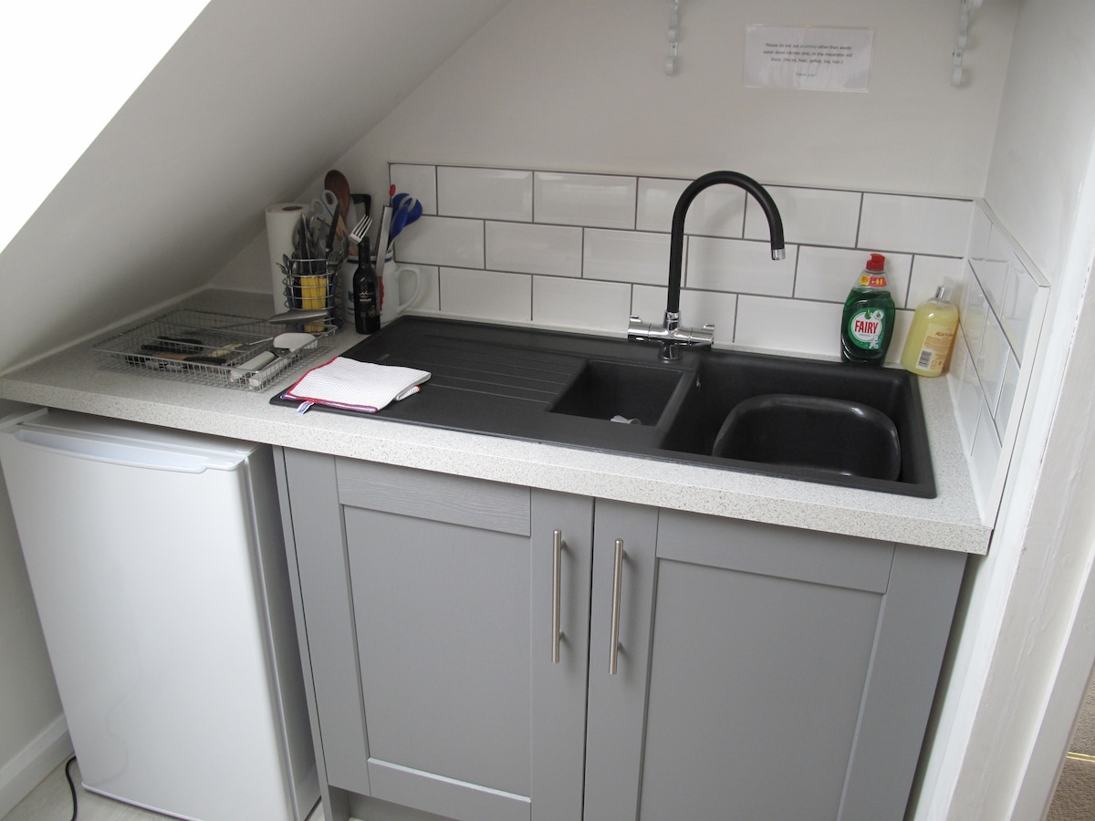 A poca distancia a pie de Esher High Street, el apartamento está situado al otro lado del patio de Clive House, una vivienda georgiana construida a mediados del siglo XVIII por Clive de la India. El alojamiento recién reformado incluye: sala de estar, cocina/comedor y dormitorio doble con baño privado y cama tamaño king. La sala de estar incluye una nueva cocina compacta y pequeña totalmente equipada, comedor con estufa de leña, sofá de lujo y TV inteligente de alta definición/barra de sonido Sonos, así como wifi de cortesía.