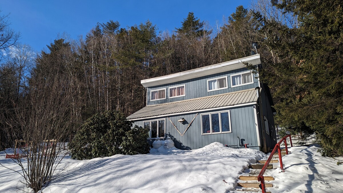 Chalet en la cima de una montaña situado en el corazón de las montañas Verdes. Disfruta de la verdadera vida de montaña durante todo el año a 25 metros de Killington, acceso al río White a pocos minutos de casa, abundancia de rutas de senderismo y campos de golf. Céntrico a Killington, Rochester y Woodstock. Después de tus aventuras, regresa a un hogar acogedor y cómodo con hermosas vistas desde todas las habitaciones, múltiples cubiertas, ¡nueva! chimenea y sauna, y muchos toques especiales para ayudarte a desconectar y relajarte.