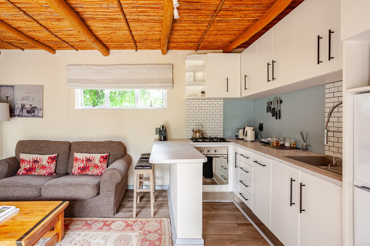 Hanepoot Cottage está cerca del pueblo de Franschhoek. Te encantará la casa de campo por su espacioso y privado entorno en una granja vinícola y frutal en activo enclavada en las montañas del valle de Franschhoek. Es buena para parejas, aventureros solitarios, viajeros de negocios y familias (con hijos). Te invitamos a explorar la granja e incluso practicar tus habilidades de chipping y putting en el green. Hay un inversor para proporcionar electricidad durante los períodos de reducción de carga.