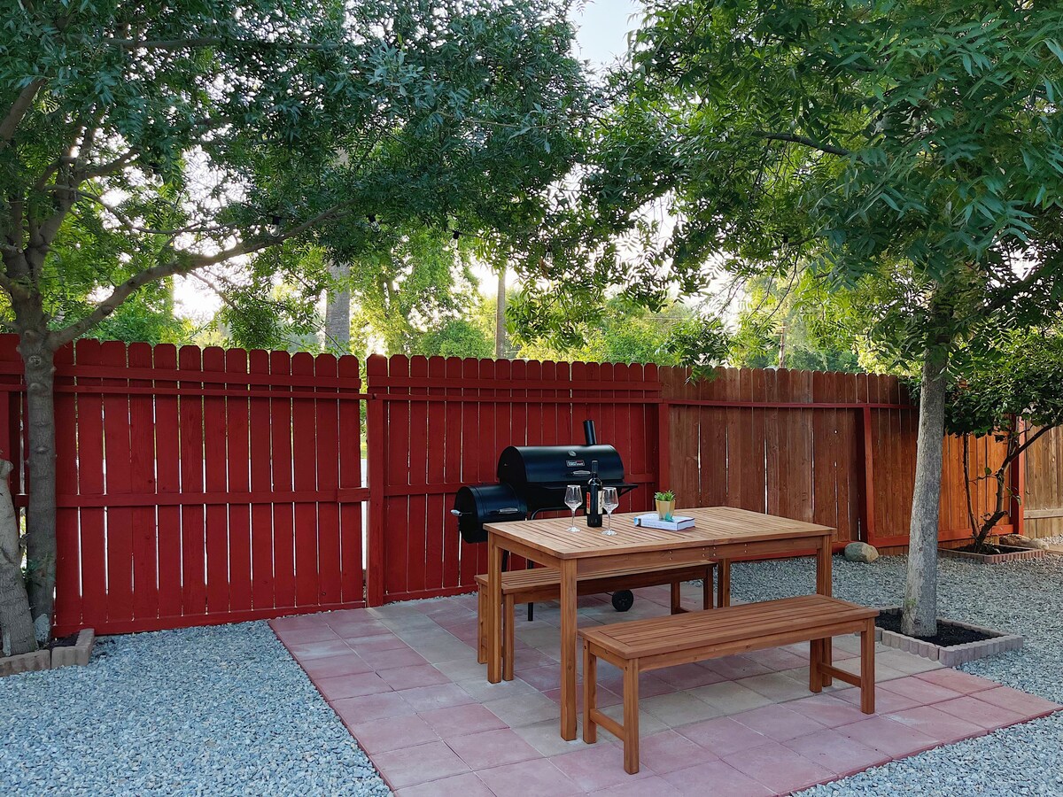 ¡Relájate y desconecta en nuestra querida casa de campo azul en el corazón del centro de Riverside! La casa está cerca de muchas atracciones locales. Camina unos minutos por el distrito histórico hasta el sendero del monte Rubidoux si te sientes con energía para una caminata matutina, pasa una tarde en el Museo de Arte de Riverside, da un paseo nocturno hasta el Mission Inn para disfrutar de buena comida y bebidas.