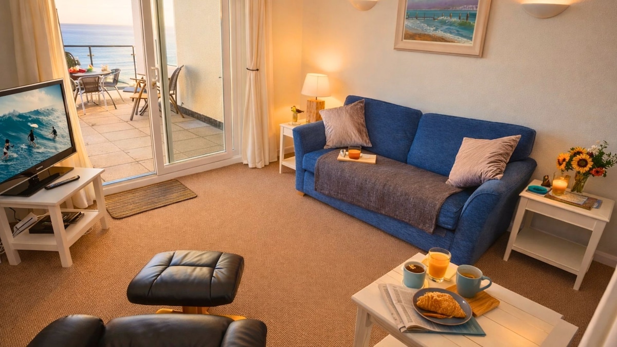 AMAZING VIEWS TO THE BEACHFRONT, ARGUABLY THE BEST IN WOOLACOMBE, NEXT TO THE BEACH. ANYDAY ARRIVAL EXCEPT SUNDAY (Xmas / NYE arrivals differ; please check calendar) Contactless check-in Minutes’ walk to village amenities Well behaved dog welcome - no cats Dog friendly 3 mile sandy beach Iconic Surfing reserve Business grade Wi-Fi (no speed drop for multiple users) SW facing patio, lounge & bedrooms to the shore & rolling waves Large rooms Free Underground parking and CCTV 65" Smart TV