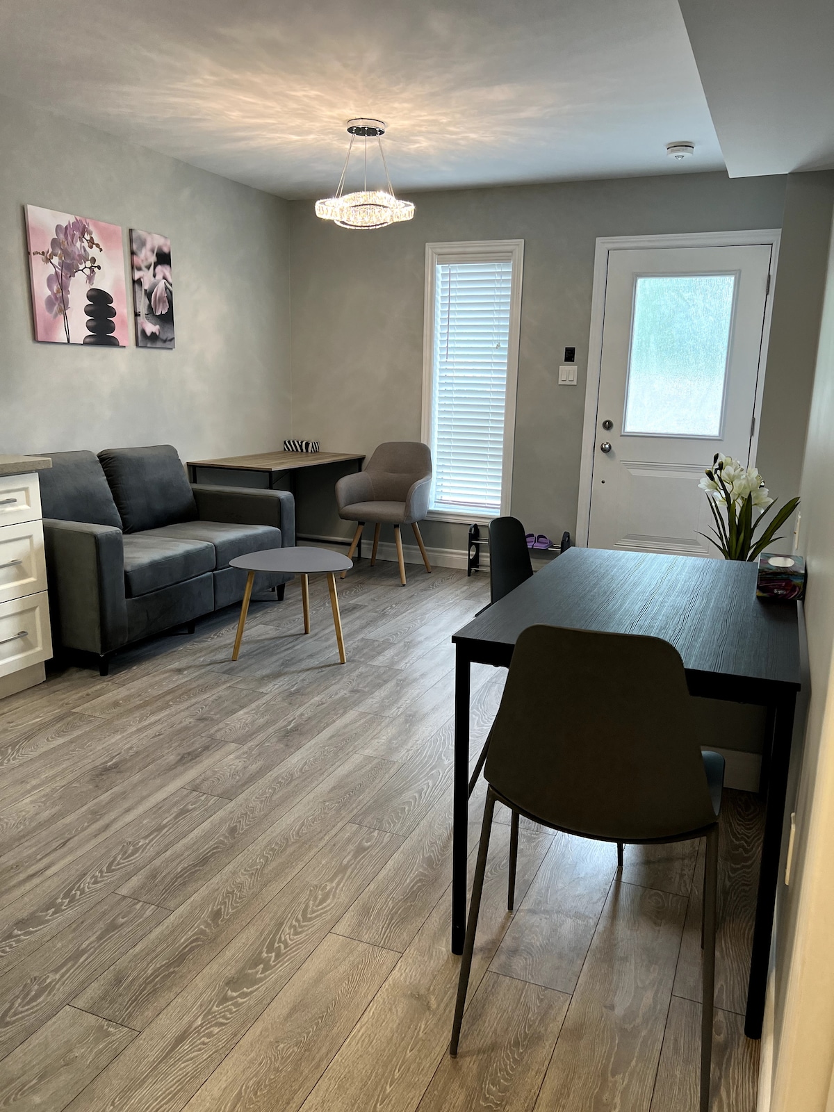 La Gallery Suite, cerca de Locke St. y McMaster, es ideal para estancias de negocios o de placer. Esta luminosa suite de concepto abierto con dormitorio separado cuenta con obras de arte únicas del artista de Guelph Ryan Price. Ubicada encima de una tranquila clínica de RMT, disfrutarás de una estancia tranquila y privada. A poca distancia a pie de tiendas y cafeterías de moda. Aparcamiento gratuito incluido para tu comodidad. ¡Reserva ahora para experimentar una mezcla de comodidad, arte y conveniencia!