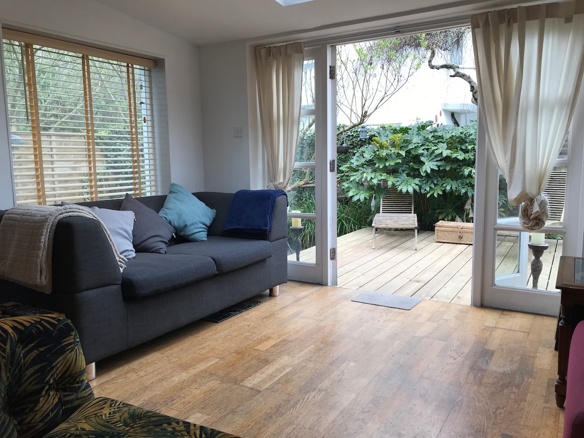 Un moderno apartamento anexo independiente con entrada privada que conduce a una cocina pequeña de buen tamaño y una sala de estar, con mesa, sillas y TV. El gran baño privado tiene una bañera de tamaño completo y ducha separada, mientras que el dormitorio tiene una cama tamaño king, armario y televisión, hay wifi de alta velocidad en todas partes. En el exterior hay un área de patio protegida para los huéspedes con mesa de picnic, espacio para guardar bicicletas y una plaza de estacionamiento (también hay un punto de carga de vehículos eléctricos para su uso por acuerdo).