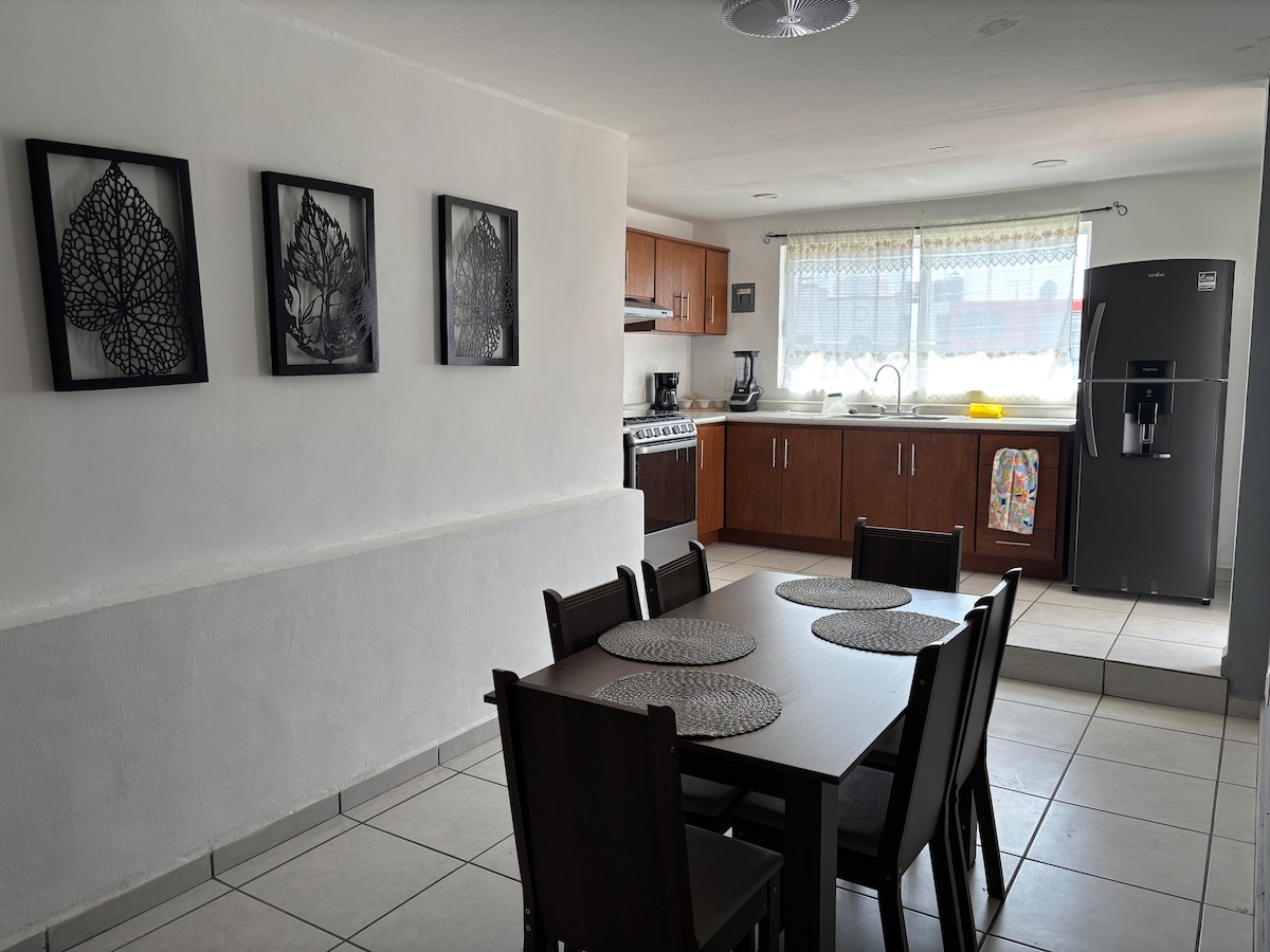 Cómoda, funcional y acogedora; ideal estancias personales, familias y home office. Excelente ubicación con accesos rápidos a centro comercial, cine, farmacia, gasolinera y zonas comerciales, además de conexión ágil al centro de la ciudad y salidas principales. Ideal para estancias largas y trabajo a distancia. Internet, agua caliente, 3 camas-matrimoniales, 4 Smart TV, estacionamiento para 1 auto, cocina equipada y patio ventilado. Incluye amenidades. Reserve y siéntase como en casa.