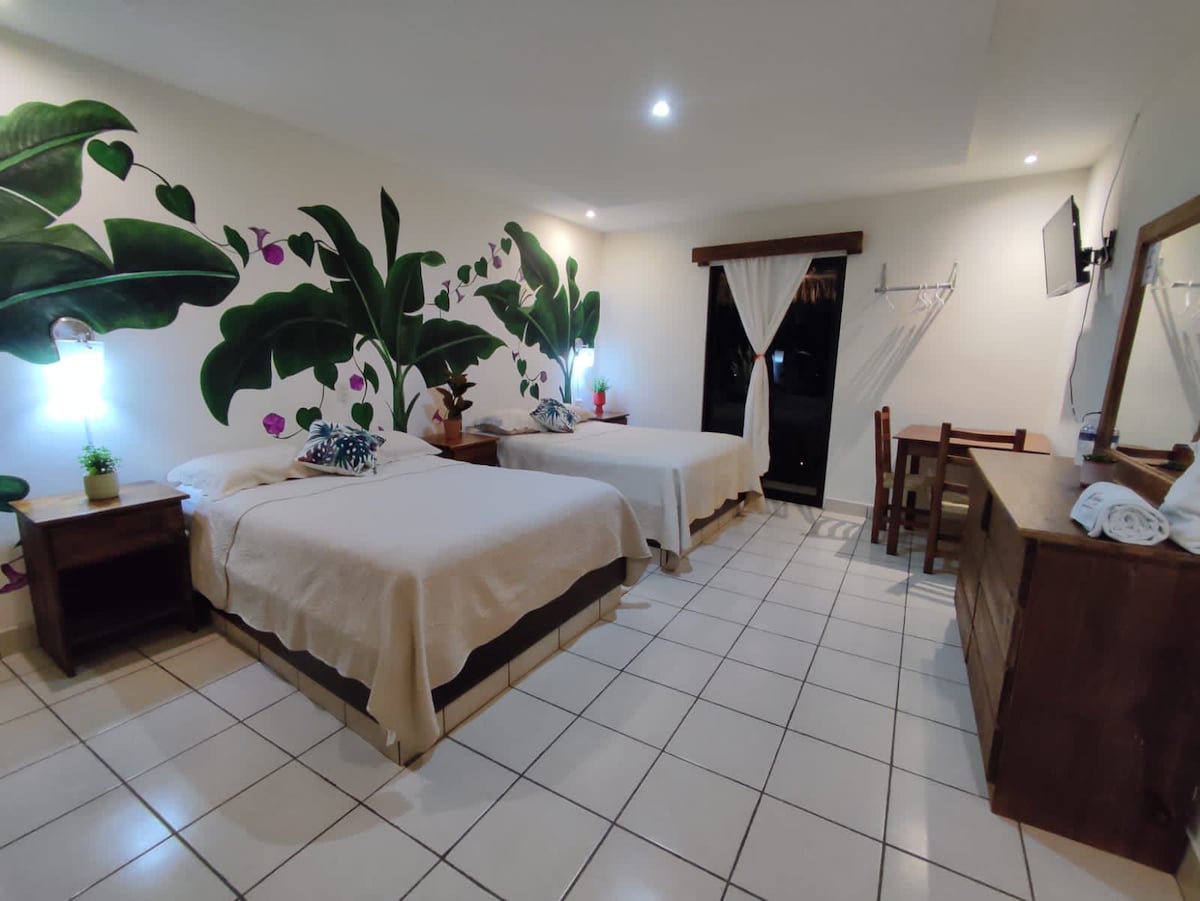 Cómoda y privada habitación, (solo hay una habitación en renta ) rodeada de naturaleza. A solo 5 min. De la plaza principal, y a 15 del jardín surrealista. Entrada independiente, baño propio,agua caliente , wifi starlink, smartv, mini split, área de grill, areas verdes. Supermercado cerca. Área muy agradable segura.