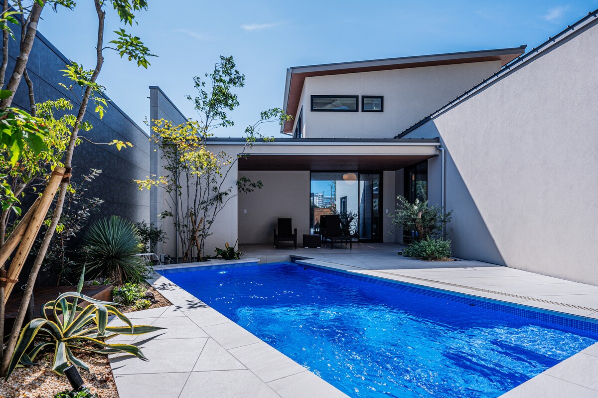 Villa de un piso en Fukuoka, a 1 minuto a pie de la estación, piscina privada, simulador de golf, sauna interior