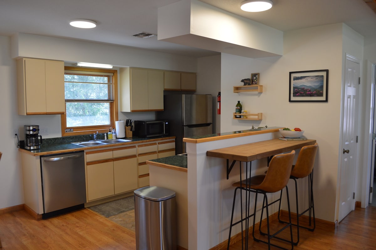 ¿Te apetece un retiro tranquilo con unas vistas impresionantes y todas las comodidades de casa? Reserva tu estancia hoy y descubre por qué Burnsville es una joya escondida en Blue Ridge. ¡Te damos la bienvenida a tu escapada a la montaña! Ubicada en un lote privado de 1,5 acres justo al lado de la autopista 19E en la hermosa Burnsville, Carolina del Norte, nuestra acogedora casa de 2 dormitorios y 2 baños ofrece impresionantes vistas de largo alcance y un aislamiento tranquilo, sin sacrificar el fácil acceso. A pocos minutos de tiendas, restaurantes y aventuras al aire libre en Burnsville.