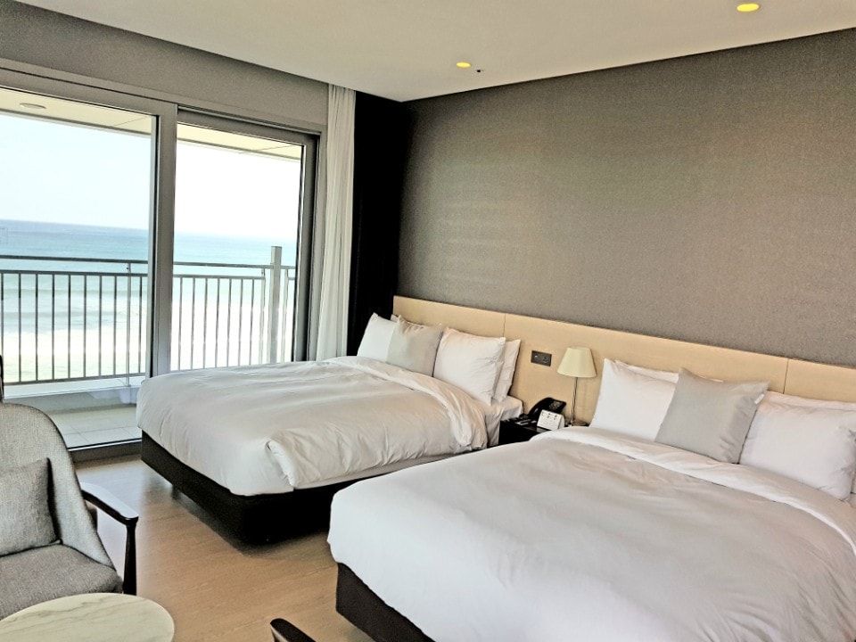 Habitación doble superior en el décimo piso del Gangneung Saint John's Hotel con vista a la montaña