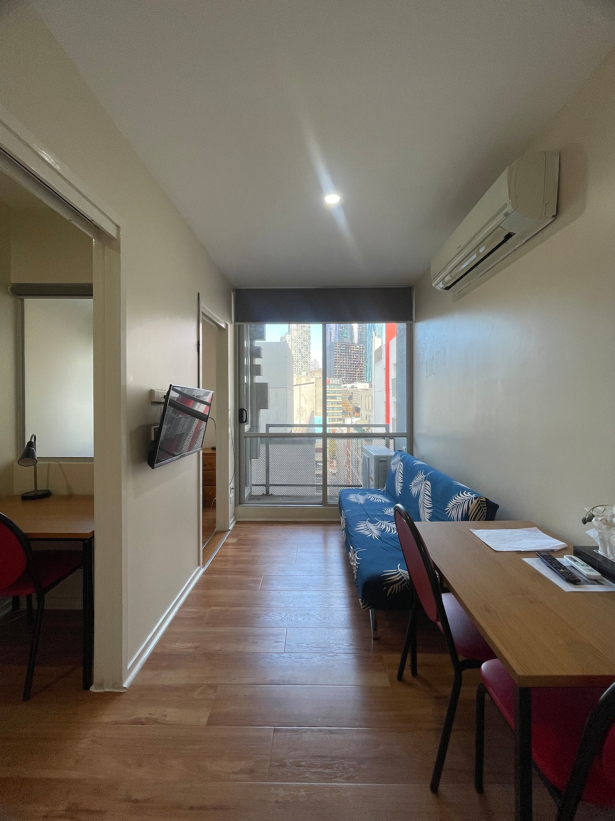 Departamento CBD con dos camas individuales, ideal para amigos, colegas o huéspedes solitarios. Camina o tranvía (10–15 minutos) hasta Queen Vic Market, Melbourne Central, RMIT, Lygon St, Chinatown y los principales hospitales. Tranvía directo a Flinders St, Crown, MCG y Docklands. Incluye baño privado, cocina pequeña, wifi, piscina cubierta, gimnasio, sauna, lavandería, estacionamiento seguro de pago (bajo petición) y cafetería en la planta baja. Excelente base para estancias de trabajo o de ocio.