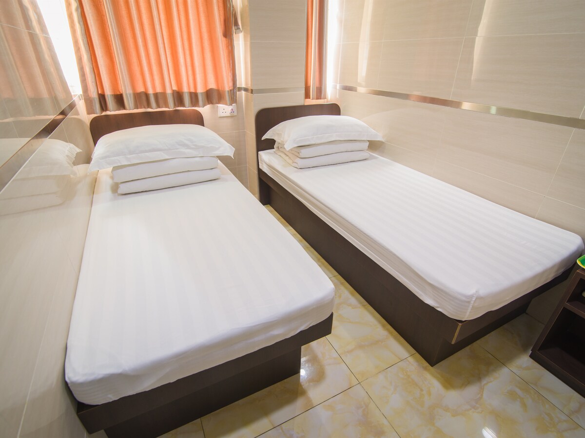 Es una habitación acogedora y cómoda que puede alojar a dos personas. La habitación está amueblada con dos camas individuales y un escritorio de estudio. Hay una gran ventana que deja entrar abundante luz natural. El baño está equipado con ducha, inodoro. Esta habitación es ideal para dos amigos o hermanos que viajan juntos a los que les gustaría un espacio privado asequible para alojarse.地點優越,前往熱門商店和餐廳非常便捷。