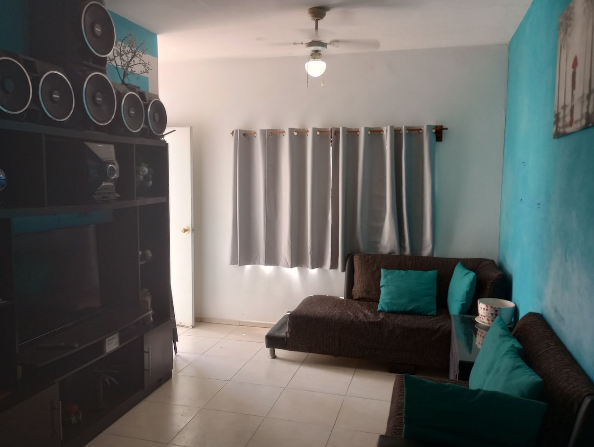 Un lugar donde te sentirás como en casa, cómodamente todo en planta baja, cuenta con todo lo necesario para tu estancia: cocina equipada, internet 🛜 recámara 1 con cama matrimonial, recámara 2 con tres individuales ( una se saca de bajo de otra y se puede guardar de nuevo para optimizar espacio) baño, patio de servicio, estacionamiento, área común con hermoso lugar para caminar, alberca grande y asador. Al encontrarse en un fraccionamiento se tiene vigilancia 24/7 y reglamento.