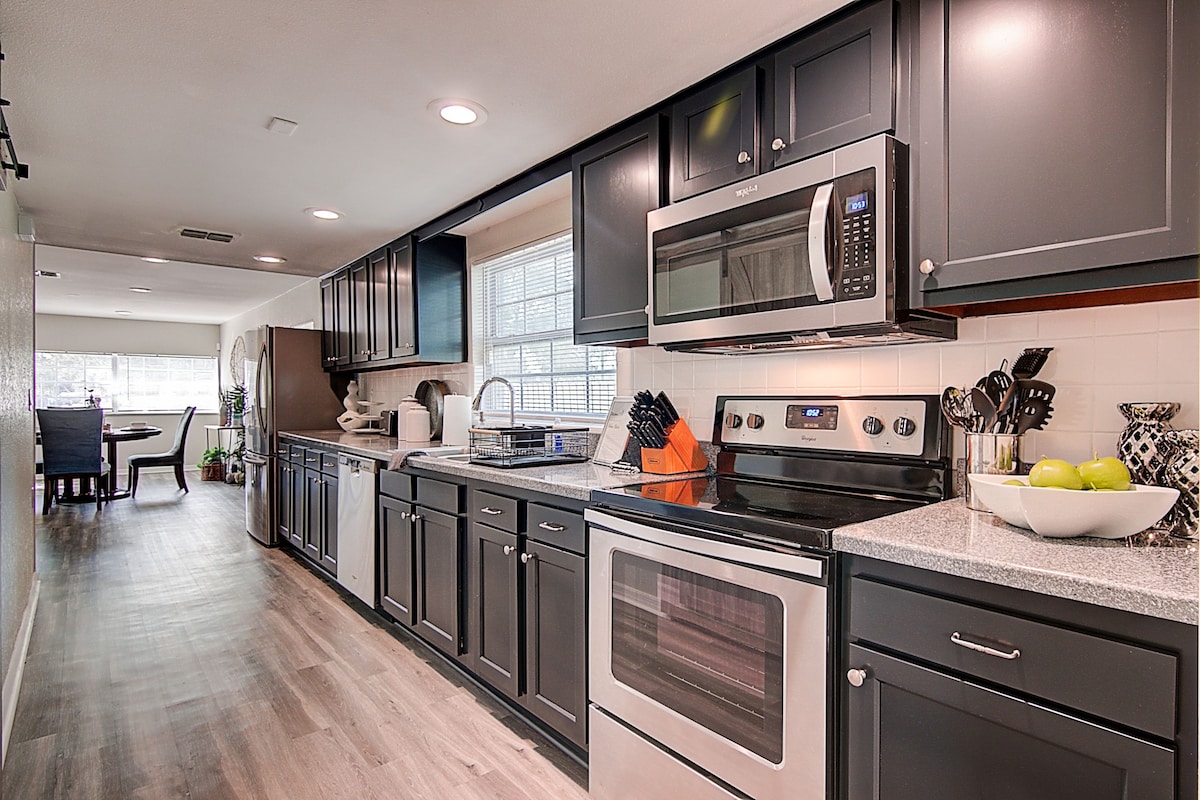 Nuestra morada de 1300 pies cuadrados está cerca de todo lo que Tampa tiene para ofrecer. Restaurantes, cervecerías, el centro de la ciudad, el aeropuerto, estadios deportivos/de conciertos, el zoológico, el acuario, Ybor y el paseo fluvial. ¿No te apetece comer fuera? Enciende la parrilla o utiliza la cocina completa. ¿Listo para relajarte? Salta a la piscina de agua salada y toma el sol. Al final del día, da un paseo al atardecer a lo largo del río Hillsborough, al otro lado de la calle en Rivercrest Park.