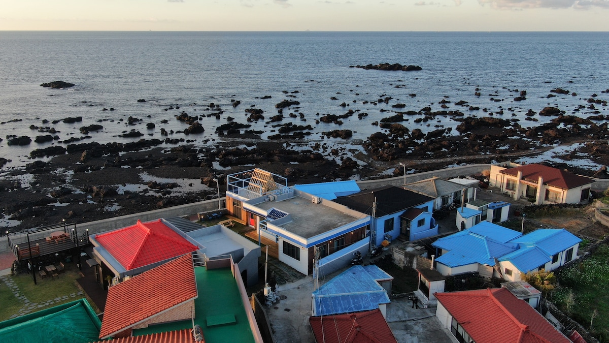 15평 패밀리룸 푸른제주펜션(성산일출봉과 우도전망)도보 1분 바다뷰 일출장소