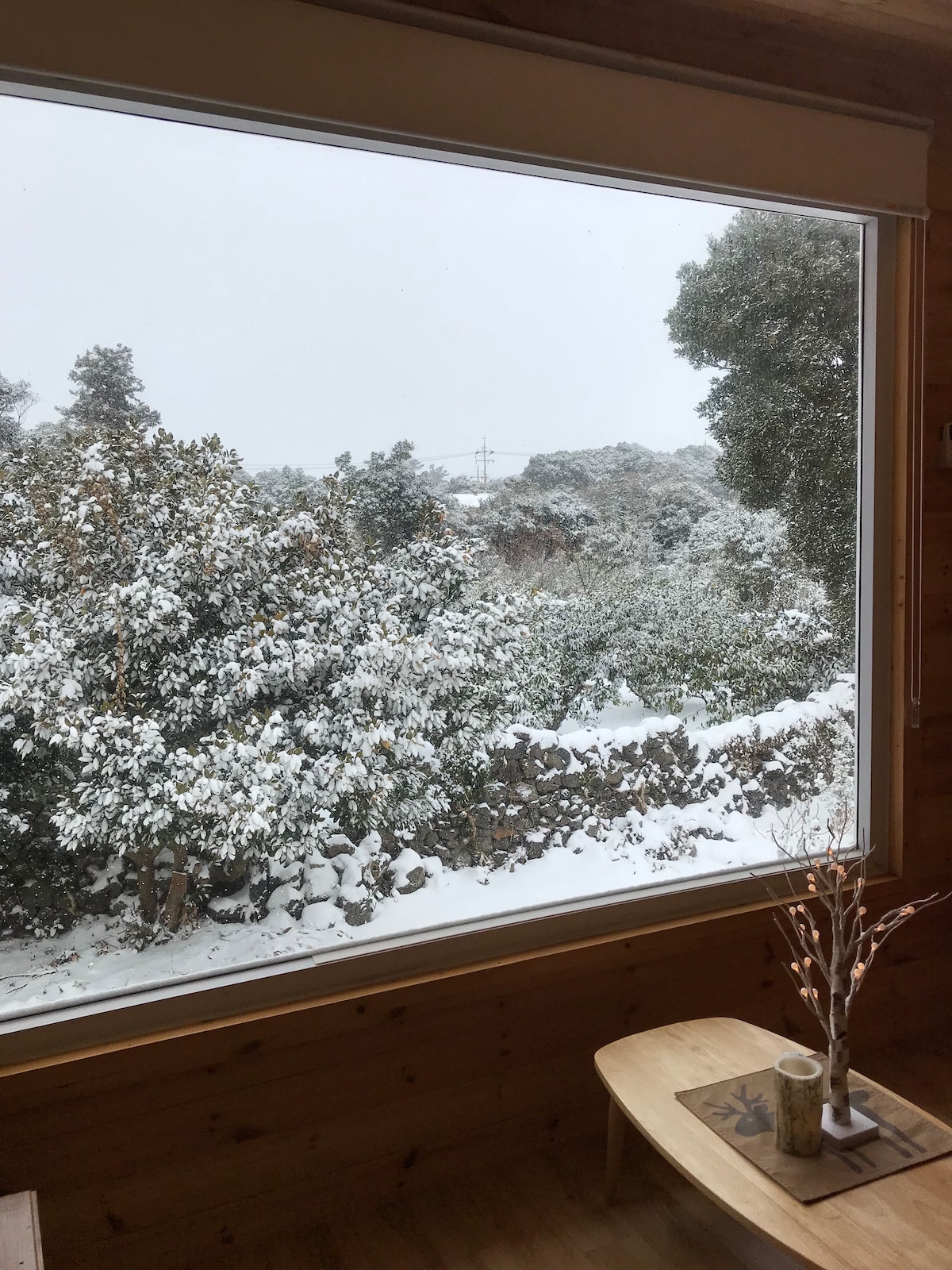 [다붓-(느루잠)] 제주 겨울 전망 좋은 통창 뷰 힐링 나무정원 돌담길 친환경 주택