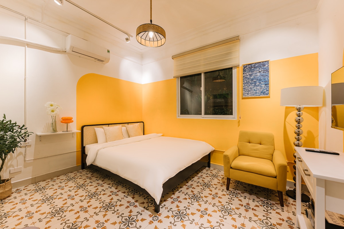 Disfruta de un estudio tranquilo y moderno a pocos minutos de West Lake y Truc Bach. El espacio cuenta con luz natural brillante, una cama tamaño queen, wifi rápido, un escritorio y acceso sin restricción de horario. Rodeado de cafés, restaurantes, tiendas de conveniencia y mercados locales, este tranquilo estudio es perfecto para viajeros de negocios, trabajadores remotos y huéspedes que buscan una estadía tranquila y cómoda en Hanói.