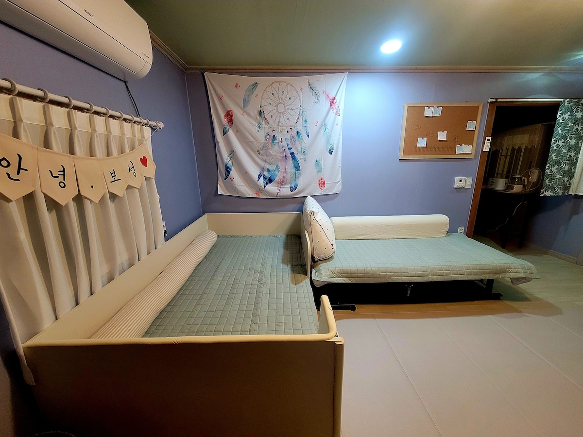 ♧ 2025. 5. 리모델링된 독채 숙소 중 루프탑을 전용으로 이용할 수 있는 2층 숙소입니다. ♧ 기준인원 4인, 최대인원 8인 ♣ 2층 전체(침실 3개, 침대 4개(퀸 침대2개, 슈퍼싱글 1개, 소파베드 1개) 및 루프탑을 전용으로 사용하실 수 있습니다. ♠평화광장, 목포역, 근대역사관 등 주요 관광지와 차량 10분 거리에 있어 목포의 풍광을 편안하게 즐기실 수 있습니다. ♠ ♠장터식당, 금성냉면, 자작, 또봄카페, 옛날초가집, 청호시장, 인동주마을 등 현지인이 즐겨찾는 맛집과 도보로 이용 가능합니다. ◇ 무료 주차 : 비파공영주차장(도보 1분) ♤ 머무시는 동안 편안한 힐링을 즐기실 수 있도록 호스트가 직접 케어하며 준비하고 있습니다.