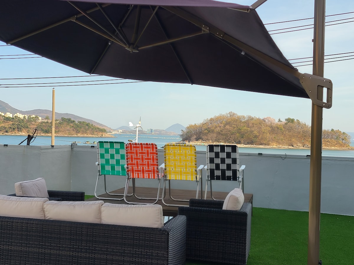 Pensión familiar privada con terraza privada de 50 pyeong en la 1ª y 2ª planta con vistas al mar