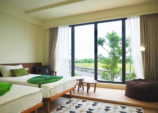 入住這間寬敞又安靜的房源,忘卻所有心中的煩惱 提供腳踏車,附近就有河堤車道可暢遊鄉間體驗田野風光 隔壁就是好然餐廳,住宿享優先用餐,平日用餐招待餐點 官方Line@goodspring預約一人最低不到900元。 好山雙人房(2F) 鄉村河岸風景,可加兩床,最多四人 房價 / 服務: 2800元/晚;春節房價:4000元/晚【除夕至初五】 (※房價不含早餐) 房間介紹: 好山以放鬆舒適的綠色為基底,兩張獨立的單人床適合淺眠怕被打擾的旅客,亦可併成一張使用。 加一人500元(含床墊、枕被、備品);6歲以下不佔床不收費。 房間設備: 43吋液晶電視、書本雜誌、觀景陽台、獨立衣櫃、免治馬桶、分離式衛浴、花灑淋浴、小椅凳、浴巾、沐浴用品、吹風機、熱水壺、冰箱、空調、WI-FI。 如有需要,民宿有提供兒童安全馬桶座、嬰兒澡盆。