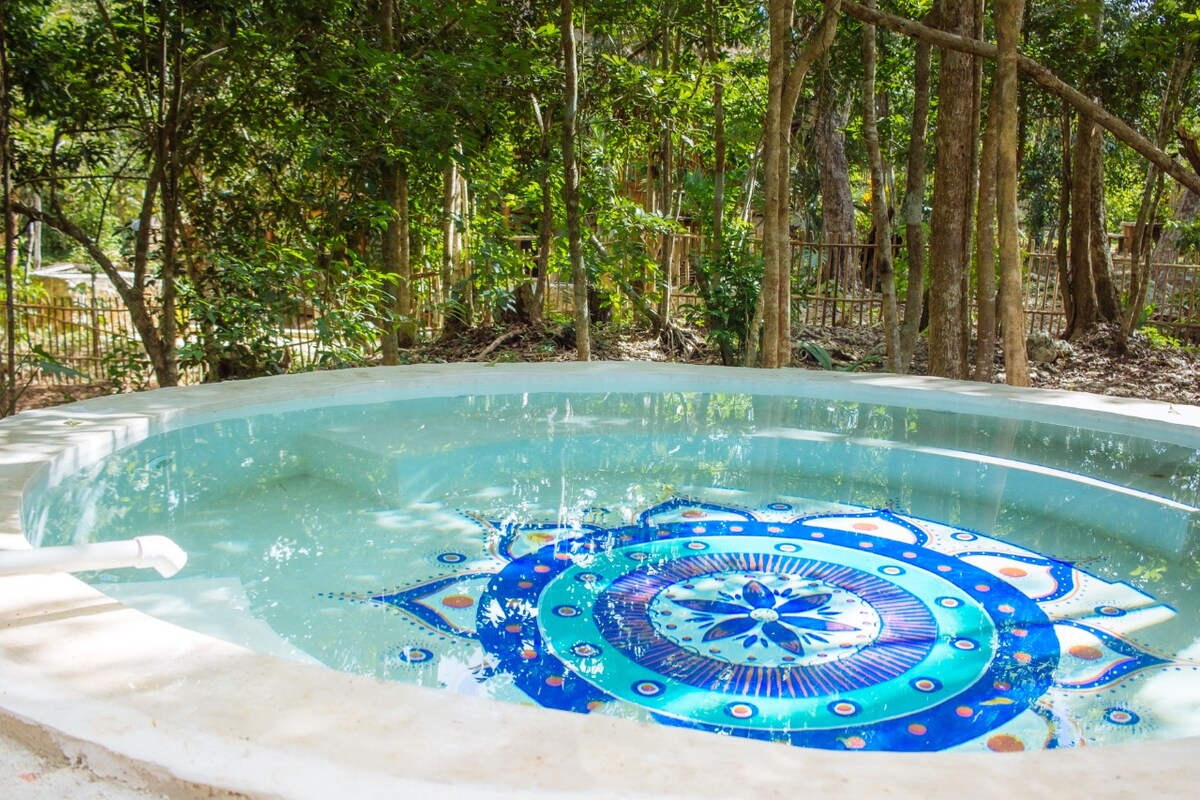 ¡SOMOS PET FRIENDLY! Jacuzzi privado en la naturaleza. Relájate en esta escapada única y tranquila. Hermosas cabañas en medio de la selva. Cabaña casa maya y una casa de arbol. Rodeadas de naturaleza, encantadora por su diversidad de aves como colibríes y hermoso panorama en la noche con un inigualable cielo estrellado. Hermosa fachada, amplios espacios y área de recreación exterior de gran tamaño.