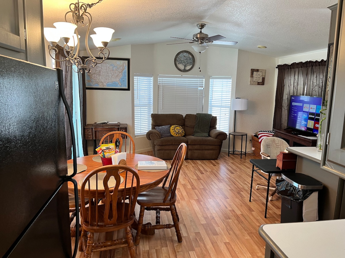 ¡Te damos la bienvenida a Little Blue! Situado en las estribaciones de Fortuna de Yuma, Arizona. Tanto si te quedas una noche como un mes, disfruta de una estancia relajante y sencilla con una cama tamaño queen, Roku TV, cafetería y otros artículos de primera necesidad. Nos enorgullecemos de la limpieza y de ofrecer una experiencia de calidad a todos los huéspedes. ¡El estacionamiento cubierto tiene suficiente espacio para que un vehículo permanezca unido a un remolque y algunos estacionamientos adicionales descubiertos!