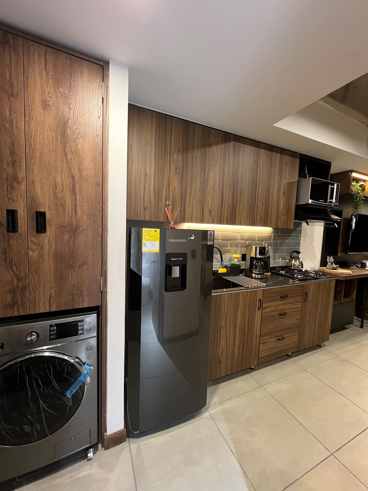 Vive experiencia única en este exclusivo apartaestudio con acceso privado. Relájate en el balcón con plantas naturales, iluminación suave y vista a un parque de árboles que florecen ocasionalmente. Equipado con amenidades de lujo y un diseño moderno, pensado para quienes valoran el confort y la privacidad. Ideal para viajeros exigentes que buscan un espacio exclusivo y acogedor, perfecto para disfrutar de momentos de tranquilidad en una atmósfera sofisticada (Incluye aseo para estadías largas)