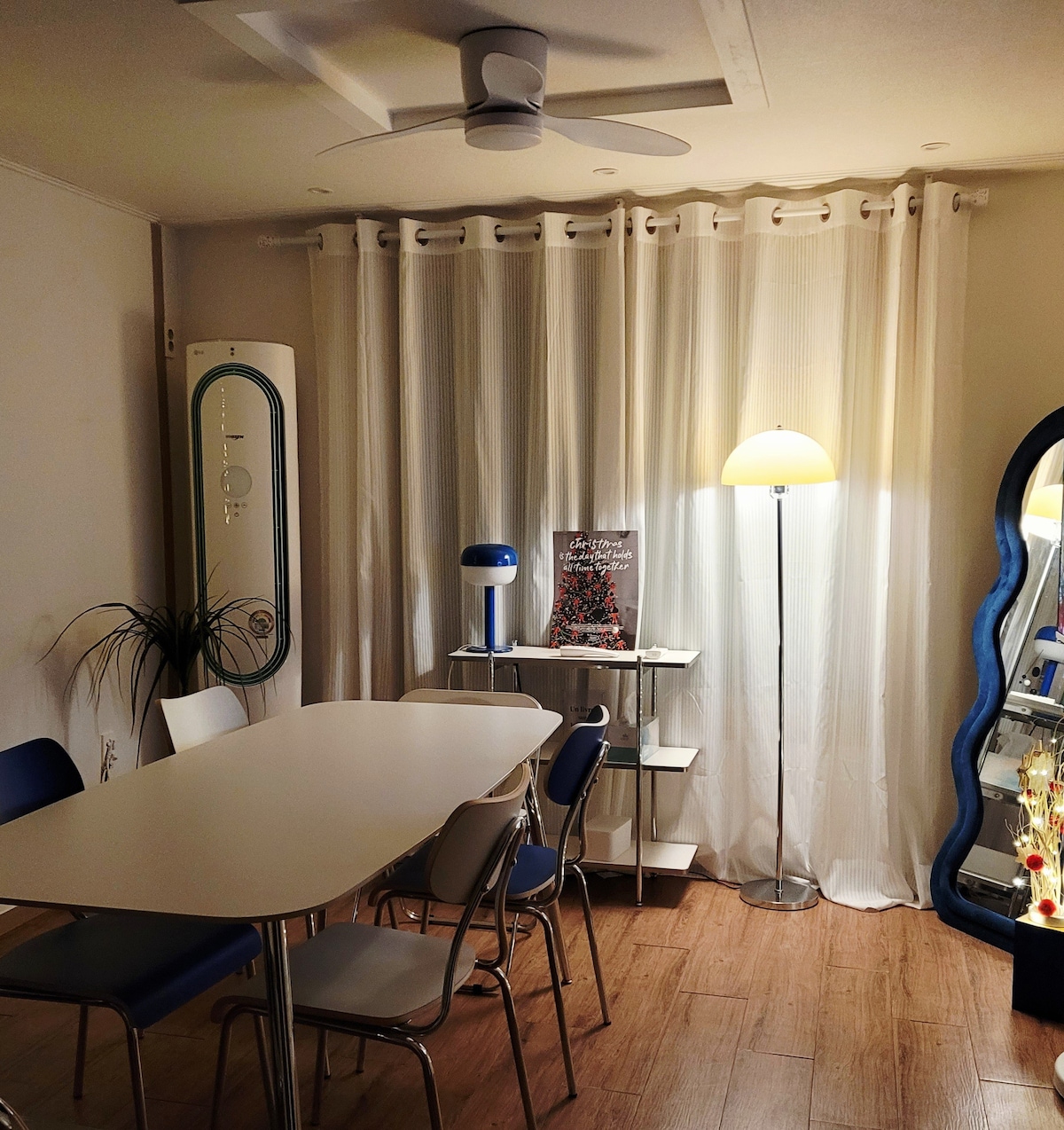 “En este momento, quiero que seas feliz aquí”, operamos limpiamente. Se proporciona un servicio de almacenamiento de equipaje gratuito. [Introducción del alojamiento] - Estacionamiento gratuito en el primer piso de la casa. - Con ascensor. - Un total de 3 aparatos de aire acondicionado en cada habitación. - Alojamiento curativo urbano con vistas al parque (+ tranquilidad) - 2 habitaciones [4 camas (3Q +1)] + amplia sala de estar + 1 baño - Cama queen de madera de lujo en el segundo piso. - Proyector de luz de pantalla grande “dormitorio principal”. - Televisor inteligente “Sala de estar”. - Gran mesa de comedor con 6 personas. - tocador de lujo + 2 stulles - Cortinas opacas. - Bonita zona fotográfica bonita de estilo casero. - Se permiten perros (cargos adicionales incurridos) [Transporte] - 1 parada en la línea 1 desde la estación de Daejeon. Después de llegar a la estación de Jungangno, a 7 minutos a pie de la salida 2. - A 15 minutos a pie de la estación de Daejeon KTX. [Artículos] - Ropa de cama de hotel (esterilización de alta temperatura) - Toallas (esterilización a alta temperatura) - 2 secadores de cabello. - bidé - Champú/jabón para el cuerpo/acondicionador/pasta de dientes - Purificador de agua fría y caliente, microondas, tazón, olla, sartén - Lavadora [Para estadías de 8 personas o más] - Ropa de cama Quintoper para 8 personas.