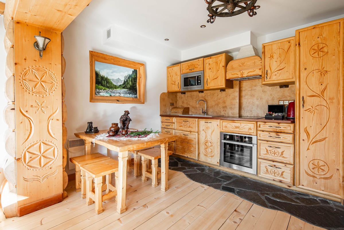 Relájate y desconecta en este alojamiento tranquilo y elegante. Siéntate en una terraza y respira profundamente con una taza de café recién hecho en el apartamento. Escucha a los pájaros, contempla la vista de todo el panorama de las montañas Tatra. O acuéstate en un suelo de madera directamente en una chimenea. En invierno, puedes llegar a las pistas de esquí ya con tus esquís puestos; en verano, las rutas de senderismo y senderismo comienzan en el bosque justo detrás del apartamento.