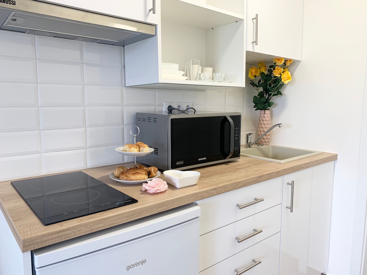 Nuestro apartamento tipo estudio está situado cerca del centro de Keszthely. El castillo de Festetics, numerosos museos, la calle Promenade, el mercado, la cafetería, el restaurante... se encuentran a pocos minutos a pie. Aparcamiento gratuito y estación de carga eléctrica junto al apartamento. Puedes comprar pasteles frescos todo el día en la panadería de enfrente. La playa de Balaton está a 15 minutos andando. Lago Hévíz a 4 km. Quedamos a la espera de tu llegada a nuestro apartamento, que se puede reservar durante todo el año.