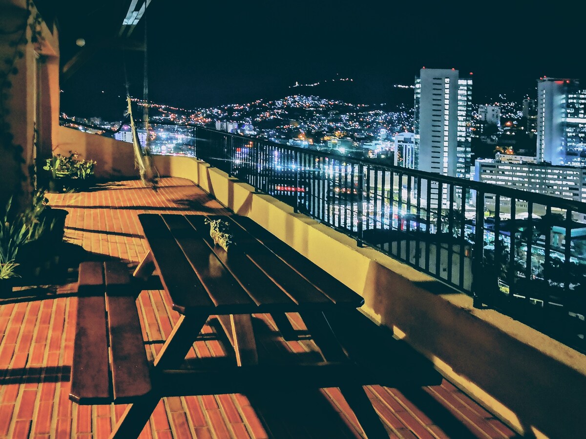 The delightful feeling of being inside of a hilltop cabin, breathtaking views of Tegucigalpa's thriving central business district from an over-sized terrace, and an eclectic open-concept biophilic design aesthetic combine to make Penthouse Casita an unforgettable stay on your next trip to Tegucigalpa.