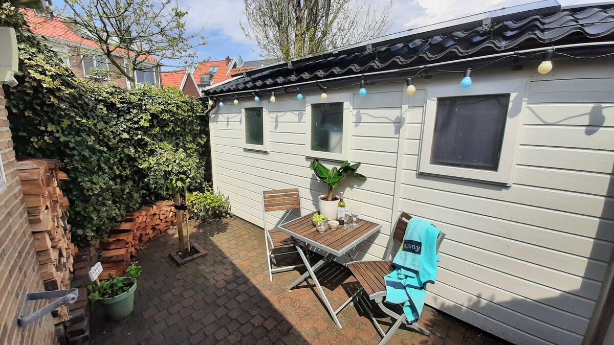 Nuestro soleado chalet de jardín está situado libremente en nuestro jardín grande de 400 metros cuadrados detrás de la casa. El chalet tiene puertas correderas al jardín, un sofá cama extraíble (doble), una cocina abierta, calefacción por suelo radiante y una estufa de leña. ¡Disfruta la paz en tu propia terraza soleada entre las flores y las plantas! Situado en el corazón de la zona de la bombilla de flores cerca de la costa, a 7 minutos a pie de la estación de tren.