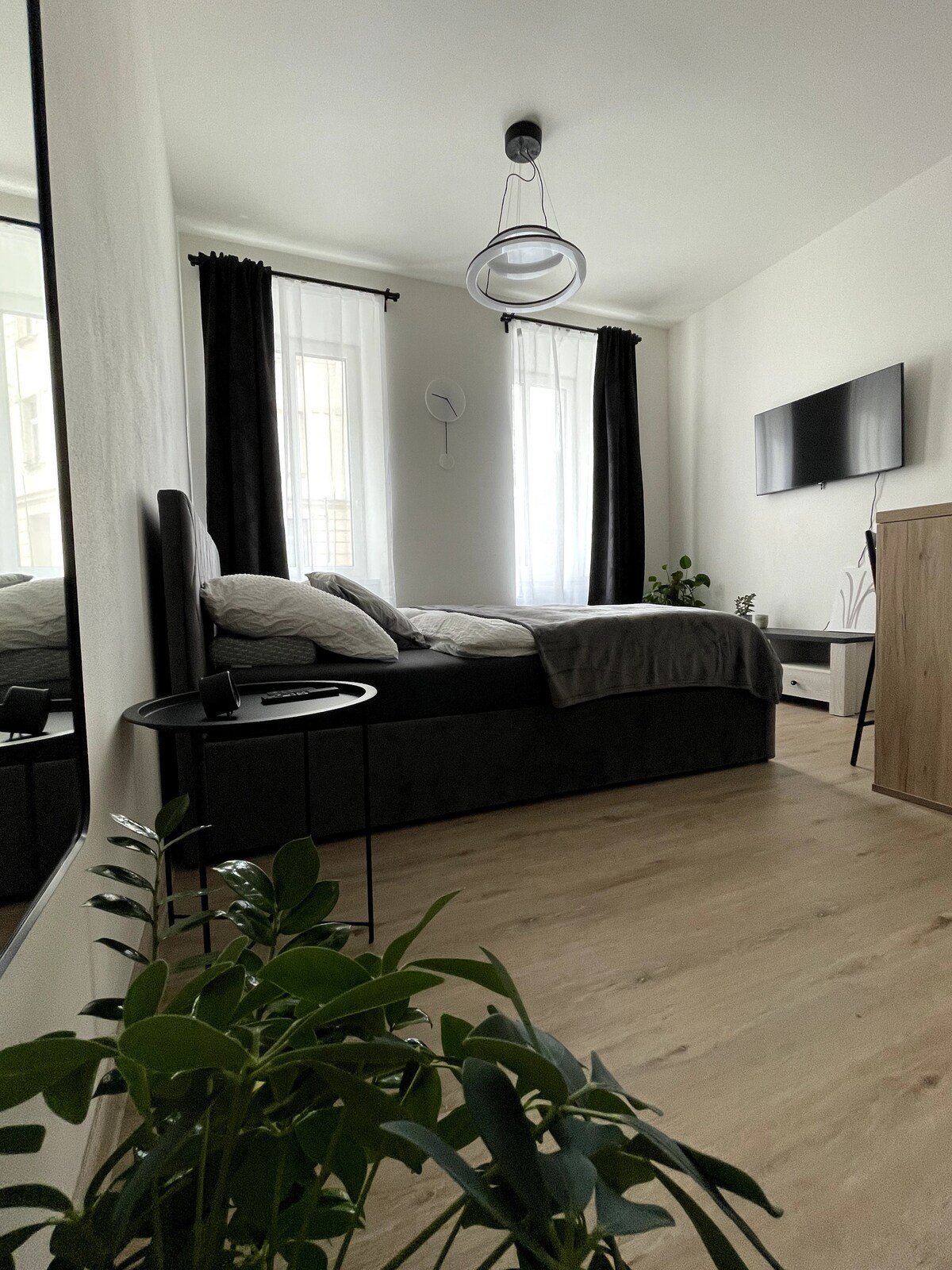 ¡Bienvenido a nuestro moderno apartamento! Situado en una calle tranquila en el corazón de la ciudad, ideal para parejas, viajes de negocios o familias con niños. El apartamento ofrece un dormitorio con cama de matrimonio, una sala de estar con sofá cama, una cocina totalmente equipada y un baño moderno. Hay conexión Wi-Fi gratuita, TV, lavadora, secadora y aparcamiento. Cerca de atracciones turísticas, restaurantes y transporte público. Check-in y check-out rápidos y sin contacto, se admiten mascotas. ¡Venga a disfrutar de la comodidad y el estilo!