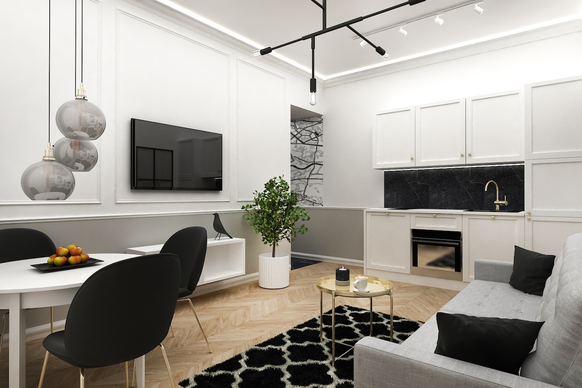 Apartament znajduje się w bezpośrednim sąsiedztwie Starego Miasta. Do Bramy Floriańskiej dojdą Państwo w około 7 minut a to Rynku Głównego w 15. Jest dla czterech osób. Apartament składa się z salonu z aneksem kuchennym, sypialni z wygodnym szerokim łóżkiem oraz łazienki z kabiną prysznicową, W salonie znajduje się wygodna sofa, która po rozłożeniu tworzy wygodne miejsce do spania dla dwóch osób. Do apartamentu przypisane jest bezpłatne miejsce postojowe w parkingu podziemnym