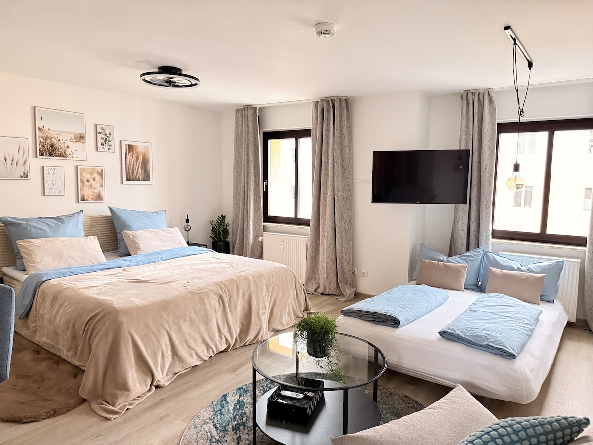 El apartamento luminoso y céntrico está ubicado directamente entre el Ringpark y Südbahnhof Würzburg. Está diseñado para un máximo de hasta 4 huéspedes durante la noche. En el dormitorio hay una cama de 1,60 m de ancho y en el salón un sofá cama también de 1,60 m de ancho. La cocina está totalmente equipada. Además de un espacioso plato de ducha, el baño también tiene una lavadora-secadora, que también permite estancias más largas.
