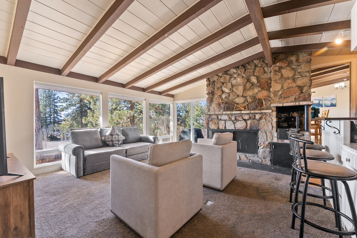 ¡INCREÍBLE UBICACIÓN en una propiedad única, privada y boscosa de más de 1 acre cerca de todo! Ubicado en Stateline, NV y a solo 5 minutos cuesta abajo de los casinos, el campo de golf Edgewood y el hermoso South Lake Tahoe, a 1 milla de la estación de esquí Heavenly (lado NV); a pocos minutos de la famosa ruta de senderismo Tahoe Rim. Almacenamiento de bicicletas de montaña interior seguro disponible. Limpio y actualizado. ¡No hay escaleras! Desayuno y refrigerios incluidos. ¡Un gran lugar para crear recuerdos y quedarte en cualquier época del año!