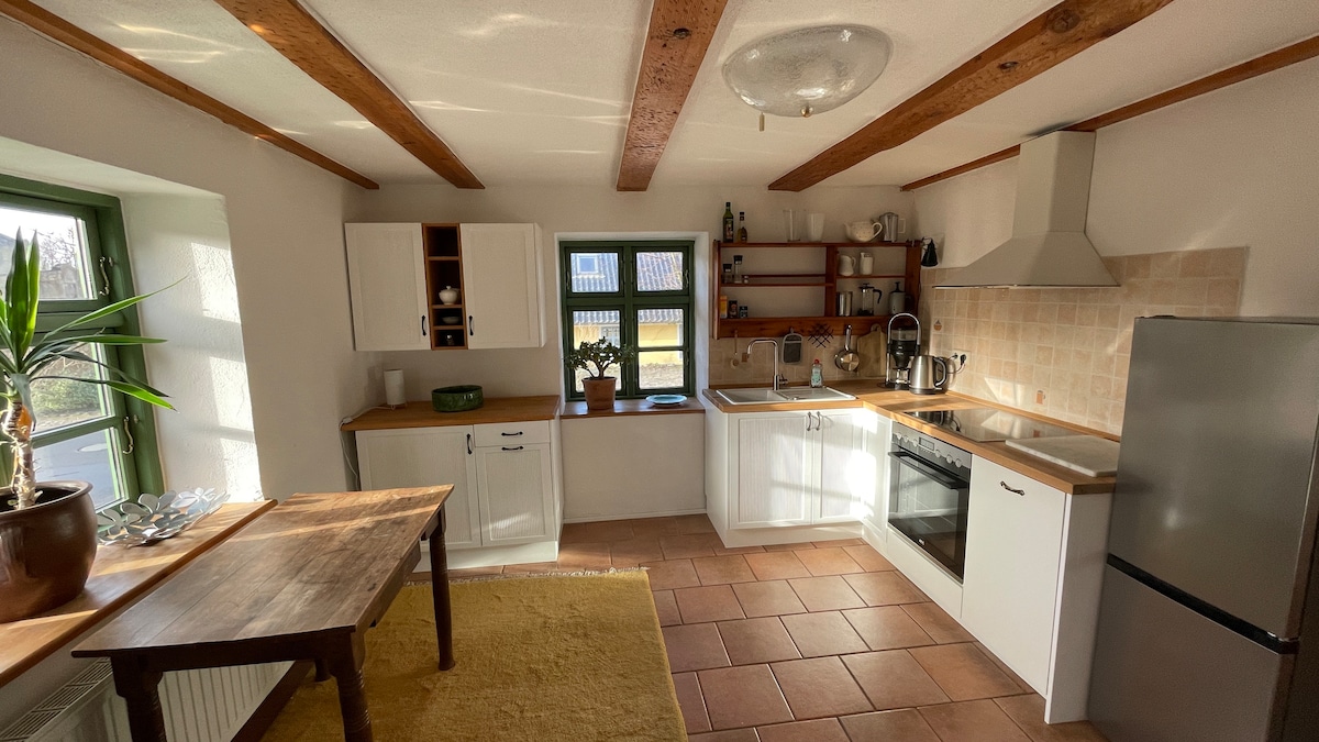 Alquilamos nuestra acogedora y elegante casa de vacaciones en la tranquila zona oeste de Rügen. Nuestra hija la llama «Familienkate Schwalbenflug», y encaja. Hay 4 dormitorios disponibles para adultos y niños. La casa fue completamente renovada en 2020, cuenta con una cocina moderna y dos hermosos baños con ducha, una sala de estar con chimenea y una terraza con vista al establo y al prado de caballos.