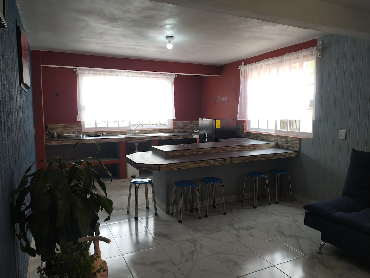 Localizada a la entrada de la ciudad sobre avenida principal muy fácil de localizar. Cerca de tiendas y restaurantes, un Domino's pizza al cruzar la calle Muy cerca de la central de abastos y central camionera 2 Camas matrimoniales, 1 colchón inflable. Cuenta con calentador solar de agua Cocina funcional para preparar alimentos Cochera privada disponible