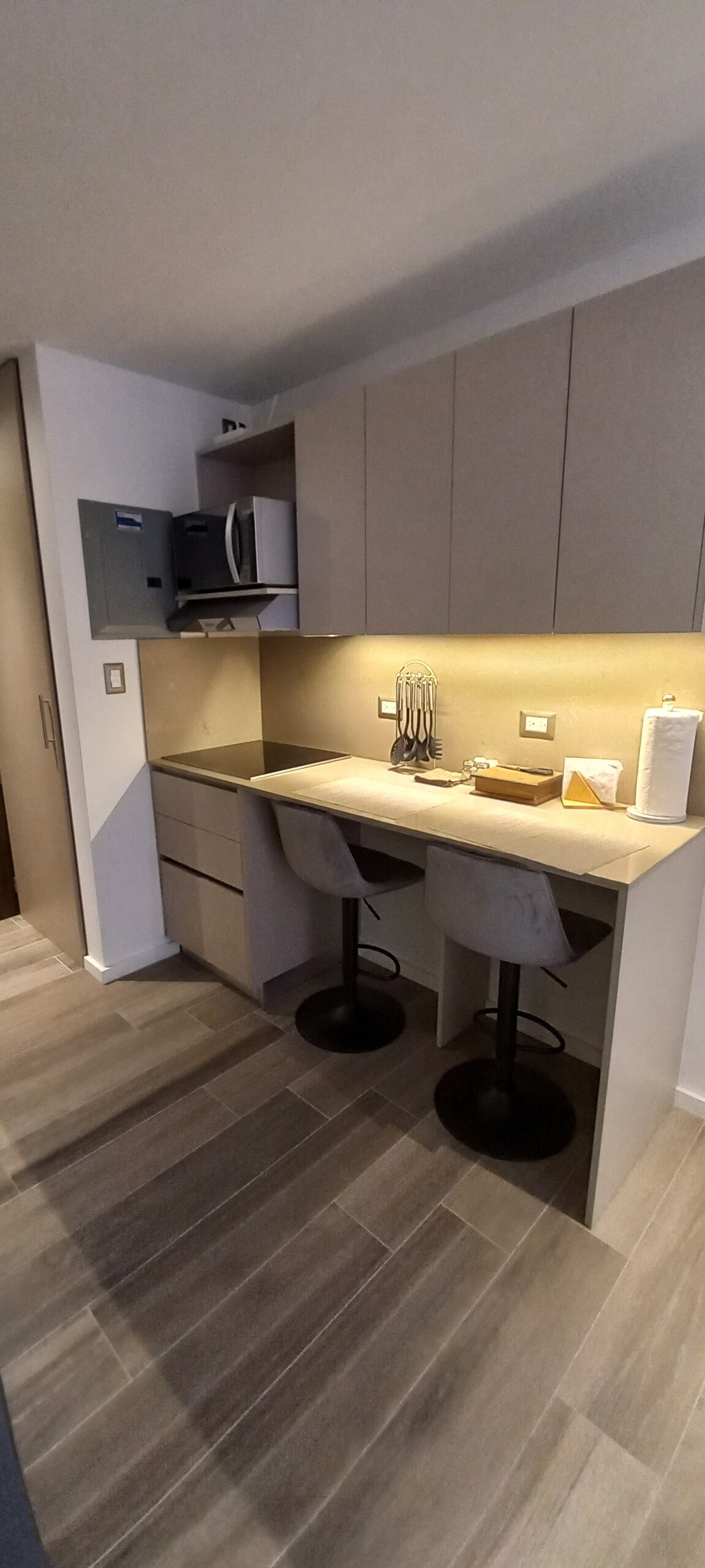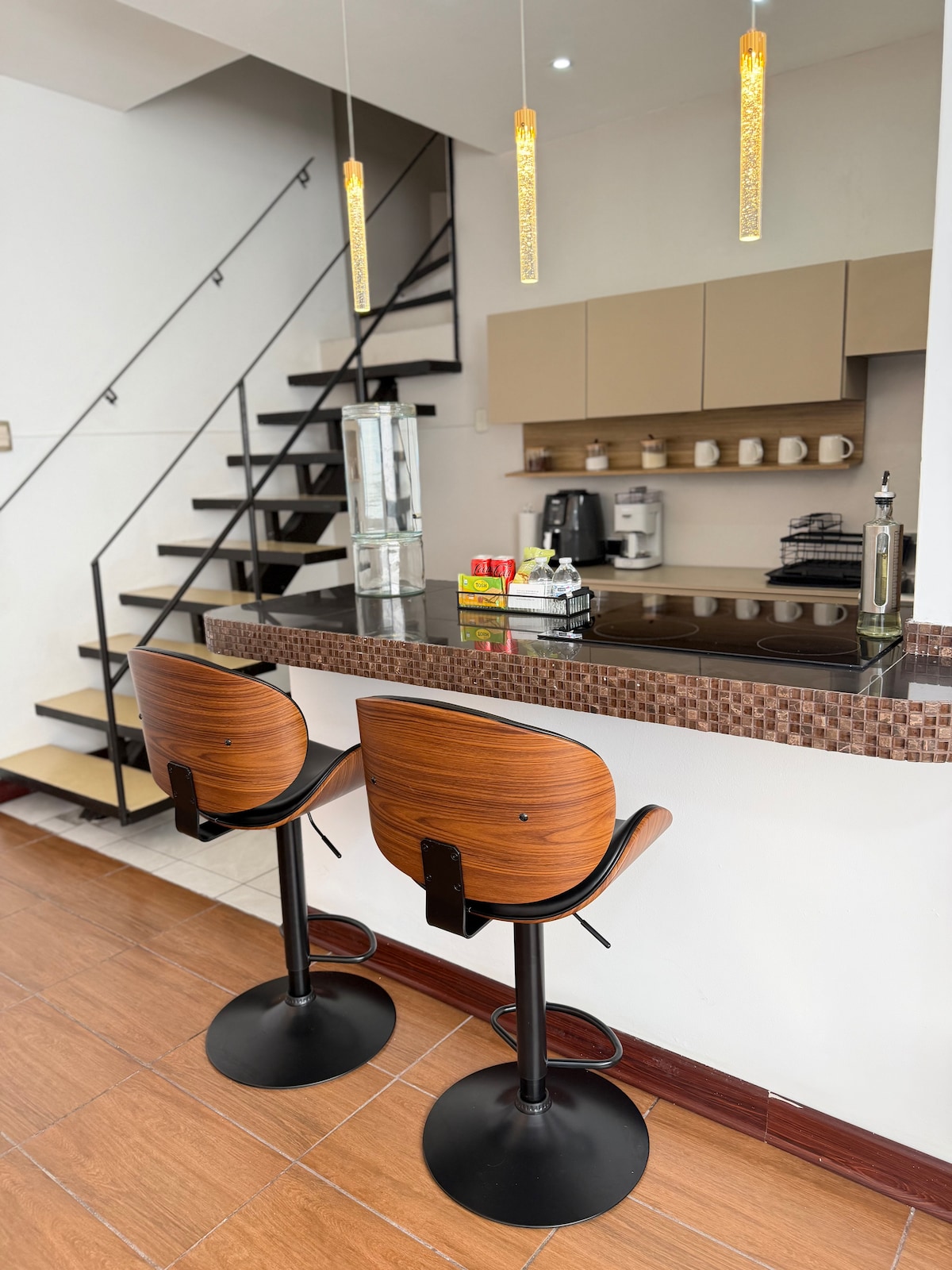 Disfruta de vistas espectaculares e inigualables a los volcanes desde el balcón en este moderno estudio. El apartamento esta esta 100% equipado con amenidades de alta calidad. Desde una cama queen y un sofá cama, hasta una cocina totalmente equipada y cortinas blackout. Incluye un espacio de estacionamiento, acceso al gimnasio y a la tienda de conveniencia del edificio. A solo 8 minutos del aeropuerto, es el lugar perfecto para ti