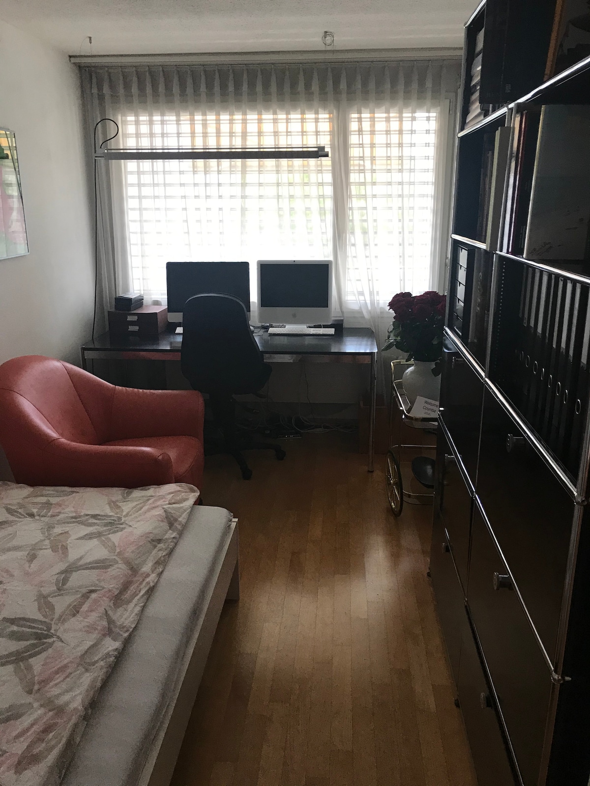 Vivimos en el mismo edificio, pero ofrecemos a los huéspedes su propio espacio sin interrupciones. El apartamento es un pequeño estudio independiente en la segunda planta. Baño completo privado y cocina. A 1 minuto a pie del apartamento puedes relajarte junto al río o ¡flotar a lo largo de él con una cerveza! Para viajar en transporte público, se puede llegar a la parada de tranvía Hardturm con una caminata de 8 minutos (577 m), el tranvía 17 te lleva directamente a la ciudad en solo 10 minutos. El campus ETH Hönggerberg está a solo 1,2 km cuesta arriba.
