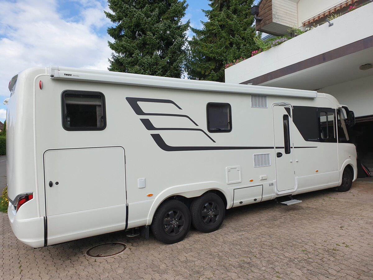 LICENCIA DE CONDUCIR C1 ES NECESARIA Nuestra lujosa autocaravana (Hymer B-Klasse MasterLine880) es el mayor modelo (9 metros largo) y más lujoso de Hymer. Especial para familia numerosa (5 personas), proporciona un lujoso espacio vital de muy alta calidad. Lo compramos en agosto de 2021 y planeamos usarlo como nuestro hogar a tiempo completo en unos años a partir de ahora. Por lo tanto, lo alquilamos completamente equipado, por lo que le garantizamos una experiencia de alquiler inolvidable.